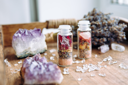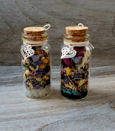 En général, j’aime réutiliser les bouteilles de mes sortilèges, mais de manière réfléchie. Je m’assure de les utiliser pour des sorts similaires. Par exemple, je prends une bouteille d’une spell jar qui a été créée pour encourager une collaboration positive et harmonieuse au travail, je la nettoie soigneusement avec de la fumée ou de la lumière de lune, et je la réutilise comme bocal pour un sort destiné à aider à cultiver l’harmonie et la communication positive à la maison. Les objectifs des deux sorts sont suffisamment similaires pour que toute énergie résiduelle attachée au pot ne perturbe pas ou n'interfère pas avec le nouveau sort.