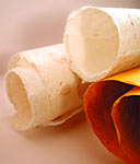 Fabriquez votre papier (et votre grimoire ?) ![]() Pâte à papier Déchirez une quinzaine de feuilles de papier (vieux courrier, enveloppes craft, papier cadeau...) en petits morceaux de la taille d'un timbre poste. Faites tremper tout ça dans un récipient pendant au moins deux heures. Si vous le pouvez, laissez-le tremper une nuit, le résultat n'en sera que meilleur. Prenez une petite poignée de ce papier mouillé, et mettez-le dans le robot de cuisine (utilisez les accessoires et fonctions pour hacher ou mouliner de la soupe). Remplissez le récipient du robot au deux tiers avec de l'eau. Mixez par petites séquences d'une quinzaine de secondes jusqu'à ce que tout soit bien haché et bien fin. Versez cette mixture dans un récipient, à travers une passoire, pour l'essorer. Si vous désirez colorer la pâte, c'est le moment d'ajouter un peu de peinture acrylique. Si votre pâte paraît trop sombre, rassurez-vous : en séchant, les fibres s'éclairciront ! Voilà ! Vous pouvez faire sécher ou congeler la pâte que vous avez en trop pour la réutiliser plus tard... ![]() Versez votre pâte à papier dans un bac en plastique assez grand pour contenir votre châssis. Un bac type litière de chat convient parfaitement. Ajoutez de l'eau jusqu'à obtenir un mélange de la consistance d'une soupe. Vous pouvez inclure maintenant quelques éléments décoratifs (fibres végétales, bouts de fil, minuscules morceaux de papier alu...) si vous désirez orner vos feuilles. Préparez une surface sur laquelle "démouler" vos feuilles : quelques plaques de carton ondulé ou quelques journaux, sur lesquels vous disposerez du papier absorbant feront l'affaire. Posez-y un chiffon lisse mais absorbant (torchon de cuisine, par exemple). Remuez votre pâte à papier. Prenez votre châssis, moustiquaire vers le haut, et posez-y le second cadre. Vous devrez les plonger rapidement dans le bac, dans cette position et sans aucune hésitation, et le laisser sous la surface, bien horizontal. Sortez les châssis de l'eau, toutjours en les maintenant ensemble et à l'horizontale. Laissez-les s'égoutter un peu. Enlevez ensuite le châssis du haut, celui qui est sans moustiquaire. Vous devriez maintenant voir une belle feuille régulière sur votre moustiquaire ! Il va maintenant falloir "démouler" tout ça... Posez un côté du châssis sur le bord de la surface que vous avez préparée pour y mettre vos feuilles. Faites basculer le châssis pour que la feuille de papier se pose contre le torchon. Pressez fermement sur le châssis pour que la feuille adhère au torchon, puis soulevez délicatement le cadre en veillant bien à ne pas déchirer ou froisser la feuille. Posez un torchon ou un chiffon sur la feuille que vous venez de faire. Avant d'en faire d'autres, vous devrez poser quelques épaisseurs de papier journal ou de carton ondulé, et remettre un tissu dessus. ![]() Quelques heures seulement après leur confection, vous pouvez déjà retirer les feuilles des multiples épaisseurs de torchons où vous les aviez déposées. Laissez sécher vos feuilles à l'air libre, si le "grain" donné par les torchons vous convient. Si vous souhaitez que vos feuilles soient plus lisses, terminez le séchage en les appliquant sur une plaque de verre, de plexiglas ou de Formica. Dans tous les cas il vous faudra repasser les feuilles presque sèches au fer très chaud afin de les aplanir. Pour pourvoir écrire à l'encre sur vos feuilles, vous devrez les enduire au pinceau avec un mélange composé d'une cuillère à café de colle vynilique pour trois quarts de litre d'eau. Sinon, elles seront parfaites telles quelles si vous désirez les utiliser pour écrire au bic. Si maintenant vous vous sentez de taille à confectionner un grimoire à partir de vos feuilles de papier, suivez moi... Sommaire | Théorie | Pratique | Matériel | Liens